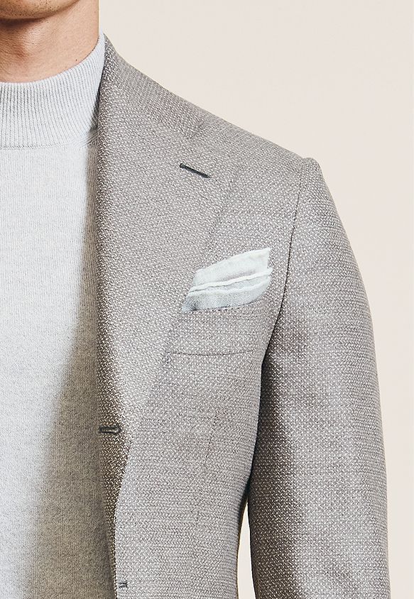 Inspiriert von der Natur verleihen kühle Blautöne sowohl dem Bräutigam als auch seiner Hochzeitsgesellschaft eine ordentliche Portion dezenter Eleganz. Einer unserer Bestseller ist dieser himmelblaue Anzug aus einer luftdurchlässigen Stretchmischung aus Wolle und Leinen.
